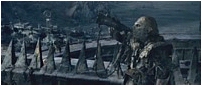 [Frodo now stands alone on the wall, staring at the Nazgul in front of him.